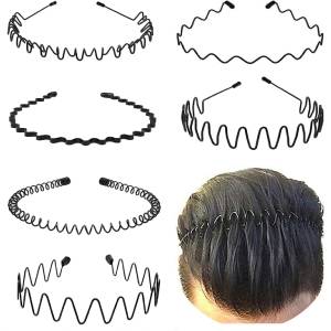Metal Hair Band for Men,Women Elastic Wavy Hairband,Black Non-slip Metal Headbands,Suitable for Outdoor Sports,Everyday Wear. (6 Pcs)